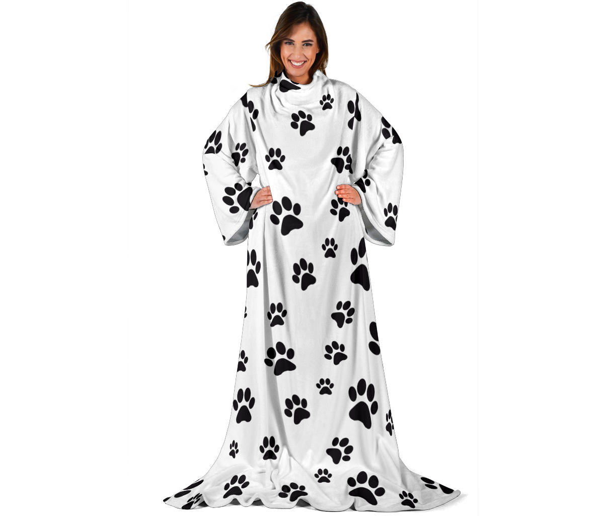 Paw Prints Adult Sleeve Blanket- White