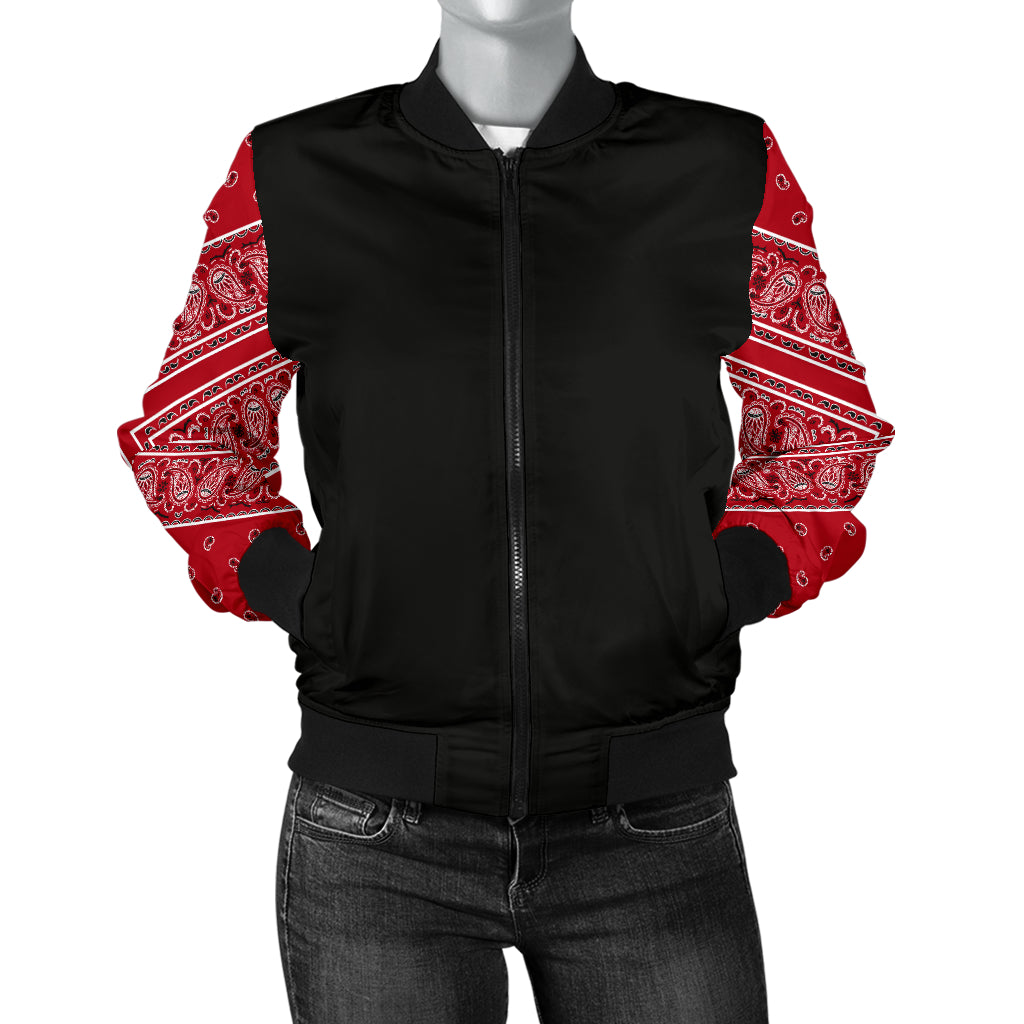 Women's Classic Red Bandana Sleeved Bomber Jacket