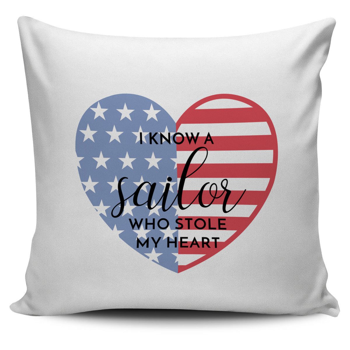 Flag Sailor White Cursive Pillow Cover - Stole my heart