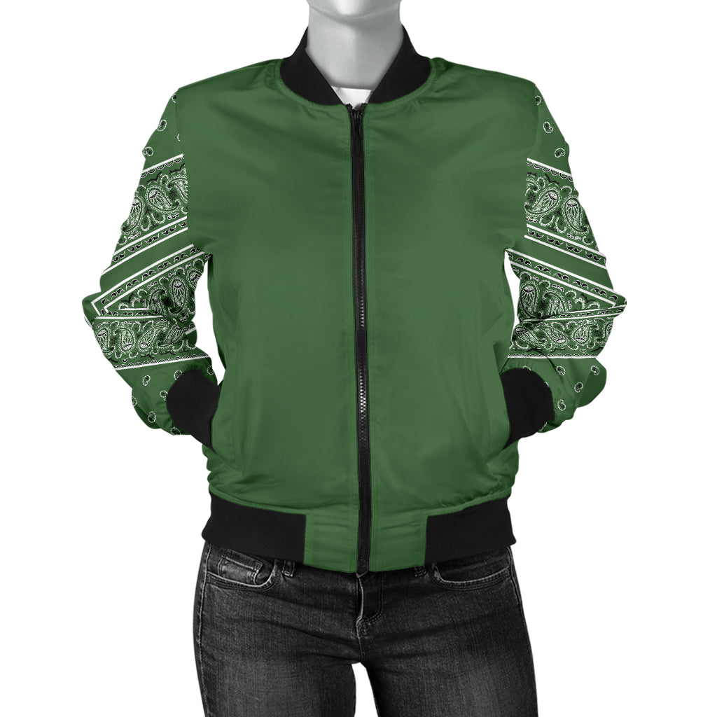 Women's Classic Green on Green Bandana Sleeved Bomber Jacket